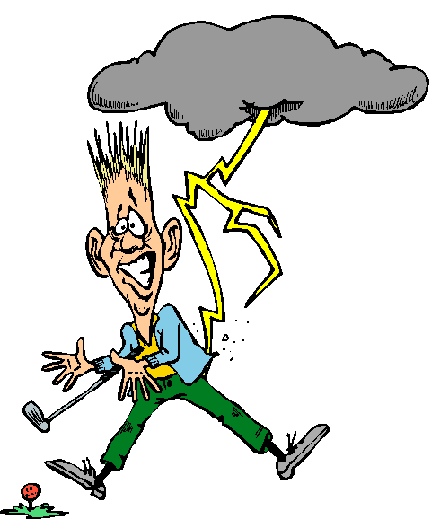 Golfer leben gefährlich. Bei Gewitter besteht die Gefahr, dass sie mit ihren vielen Eisen ein Ziel für einen Blitzeinschlag abgeben. Bei Gewitter ist sofort die Flucht zu ergreifen und Schutz zu suchen.