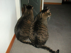 | Die Katze mit dem Namen Huitzilopochtli [links] von Heidi und Schampi erscheint auf den ersten Blick [Nur für Nichtfachleute] wahnsinnig gross, sie ist aber nicht etwa fett oder übergewichtig, sondern sei laut Schampi einfach total entspannt. Er sei der intelligentere der beiden Katers und könne sogar lesen und schreiben ???????? | |||||||||||||||