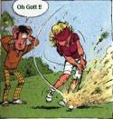 Scharpfis waren wieder einmal an einem Golfturnier. Wie schon gehabt war Irène wieder überragend. Dämpf trug mit seiner moralischen Unterstützung viel zu dem guten Resultat bei. Die Golfer sind ein eigenes Völklein, die manchmal auch die Regeln zu ihren Gunsten auslegen: Regel Nr. 1: Spiele 6, sage 5, schreibe 4 |