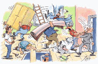 "Das ist ja unglaublich, erst bestellen die Leute dringend einen Sanitär und ziehen dann einfach um!" |