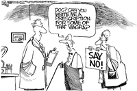 | Dass wieder Ranzzeit ist, habe man auch am Schweizer Fernsehen vernommen. In der so genannten Sitcom "Fascht e Familie" sei eine Schleichwerbung für Viagra eingebaut gewesen, angeblich ohne den gewünschten Erfolg - die Sendung dauert ja auch nur eine halbe Stunde. Offiziell braucht keiner der Vita-Männer dieses Zeugs - was ja bei den vitalen Frauen auch kein Wunder ist -, aber das Telefon vom Vita-Doktor soll etwas öfters klingeln als vor dieser Sendung.
