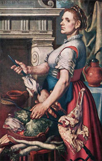 Dämpf half vorbildlich beim Schöpfen. Eigentlich waren die Zitronenhühner schon tot, aber bei Dämpf flogen sie immer noch, vor allem auf den Tisch. Vorsorglich hat Heidi schon 2 Servietten verteilt. |