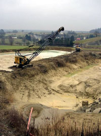 | Grosse Veränderungen sind angesagt. Peti wurde als Berater für grössere Erdbewegungen ausgewählt. An der Girhaldenstrasse wird das Biotop ausgebaggert.