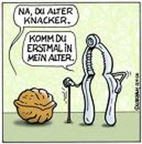 | Gute Ratschläge zum Thema Reisen und Durchfall: Ist der Stuhl auch noch so locker, nichts geht durch die Kniggebocker! Schmidtchen geht zum Arzt weil er Durchfall hat, der Arzt schreibt ihm ein Rezept und verspricht schnelle Besserung. Schmidtchen geht zur Apotheke, der Apotheker verwechselt das Rezept und händigt ihm stattdessen Antidepressivum aus. Nach ein paar Tagen geht Schmidtchen wieder zum Arzt, der Arzt fragt Schmidtchen: Na, Schmidtchen wie geht es Dir? |