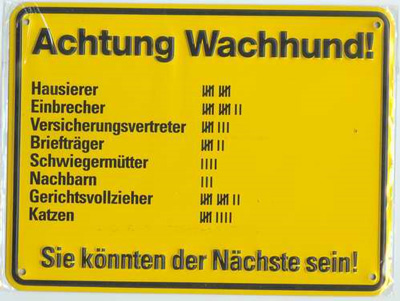 | Der Dessert war ziemlich reichlich, für die Damen fast zuviel. Irène überliess grosszügigerweise die Hälfte ihrer Portion Pauli. Sie ist so eine GUTE. Der Sinn der ganzen Operation: Wenn Pauli alle Resten isst, wird er dick und nicht ihr eigener Hansruedi. Frage: "Ich möchte einen Wachhund", sagt der Kunde. |