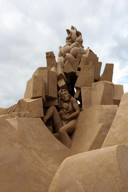 | Irène führt ihren 5-fach Rock vor, den sie im Opernhaus erstanden hat. Sie braucht nun eine Schaufensterpuppe um ihn gebührend präsentieren zu können. Sie kann natürlich auch selber eine aus Keramik herstellen. Ein kleines Exemplar hat sie uns vorgestellt. Sie will, sobald sie ihr Atelier bezogen hat mit grösseren Arbeiten beginnen. Eine gute Gelegenheit um Grossskulpturen beim entstehen zu beobachten wäre in Berlin. Wenn Irène eine Skulptur in Berlin herstellen würde, müsste wohl Peti, Pauli und Hansruedi mit dem VW-Büssli den Sandhaufen nach Unterengstringen transportieren...