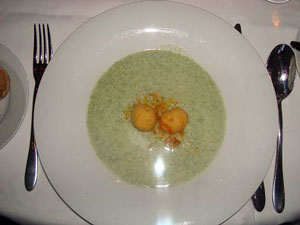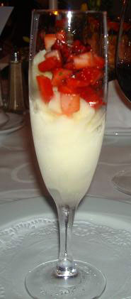Es folgte die Bärlauchsuppe mit gebackenen Mozzarellakugeln anschliessend Balsamico-Erdbeeren auf einem Moscatosorbet.