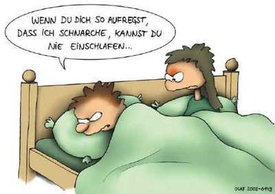Sie sind schon fünfzig Jahre verheiratet und sitzen still nebeneinander in der Bahn. Da steigen zwei Verliebte ein und setzen sich dem alten Paar gegenüber. Zuweilen küsst der junge Mann das Mädchen. Die alte Frau schaut leuchtenden Auges zu. Plötzlich flüstert sie zu ihrem Gatten: "Das dürftest du auch wieder einmal tun!" Der aber erwidert erschrocken: "Was fällt dir ein, ich kenne die ja gar nicht!"