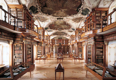 Bei Irène wurde das Zimmer ausgehöhlt um Platz für ein neues Büchergestell zu machen. In der Stiftsbibliothek in St. Gallen sind ein paar Muster von langlebigen Büchergestellen ausgestellt.