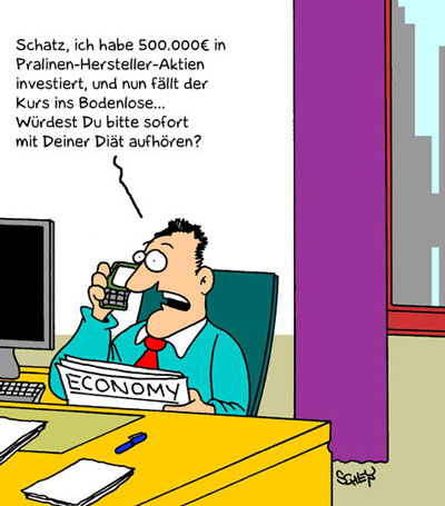 Zwei Ehefrauen langweilen sich und gehen auf die Rennbahn. Da sie nicht wissen, auf welches Pferd sie setzen sollen, fragt die eine: "Wie oft bist Du fremdgegangen?" "Ich glaube 4 mal, und Du?""Ich 5 mal, macht zusammen 9." Sie setzen auf die Nummer 9 und gewinnen. Zuhause erzählen sie ihren Männern, dass sie bei der Pferdewette gewonnen haben, worauf diese beschliessen, nächste Woche selber zu gehen.