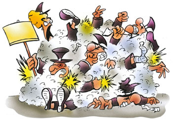Harald : "Unser Lehrer hat gesagt wir sollen einen Aufsatz über unseren Hund schreiben." Papa: "So? Lies mir den doch mal vor." Harald liest: "Unser Hund ist sex Jahre alt. Wenn wir mit dem Auto fahren, dann sperrma ihn hinten rein, damit es ihn beim Bremsen nicht vorhaut."