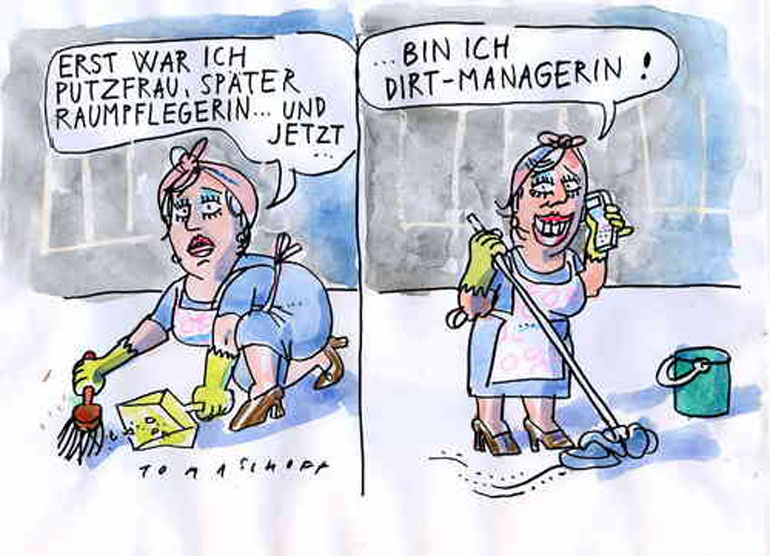 Hansruedi hat sich empor gearbeitet. Seit seiner Pensionierung hat er sich vom Experten in Sachen Staubsaugen weiter entwickelt und ist jetzt schon 2. Hilfs-Hausabwart: Irène ist nach wie vor die Hauptverantwortliche für Container und Treppenhaus, und Hansruedi ist für den Frieden zuständig.