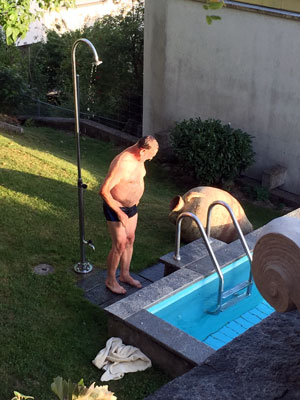 Auch Max und Moritz, die beiden Felltiere der Familie genossen den Anlass mit dem Vita, als wüssten sie, dass der Herbst naht. Es war sogar noch so heiss, dass es Parcourer gab, die sich zuerst etwas abkühlen mussten, um zu funktionieren. Und wie er funktionierte, er parlierte - wie er selber sagte - den ganzen Abend ausführlich, dies sei aber nur so weil er schon auf der Hinfahrt auf dem Auto-Sitz von Irène sass.