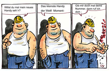 Der Fahrgast ist ganz baff und entschuldigt sich voll Erstaunen: "Ich konnte ja nicht wissen, dass Sie sich wegen eines Schultertippens dermassen erschrecken."