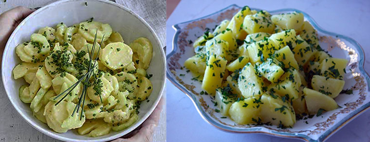 Auflösung der Kartoffelbilder: links ist der Kartoffelsalat à la Betty Bossi und rechts Petersilien-Kartoffeln.