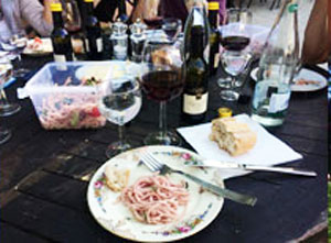 Dies war ja sicher der schönste Vita-Abend für dieses Jahr da draussen auf der Terrasse in Bülach. Es waren gar alle anwesend und gesund, was bisher eher selten der Fall war, meist war jemand am Reisen oder sonstwie abwesend. Das exquisite Mahl aus Ritas Küche und von Petis Grill, der Wein aus dem Hauensteiner Keller, es stimmte einfach alles.