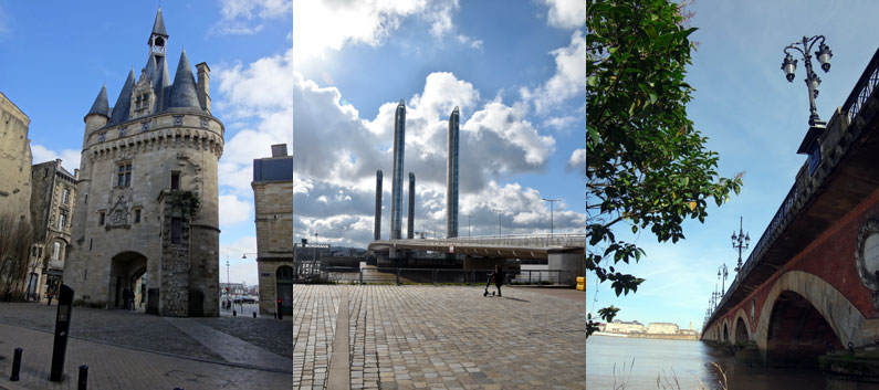 Noch einige Impressionen aus Bordeaux: Porte Cailhau (Stadttor 1495 errichtet), Pont Chaban-Delmas (2013 eröffnet, für Kreuzfahrtschiffe), Pont de Pierre (1822 eröffnet von Napoleon geplante erste Brücke von Bordeaux); Cité du vin (2016 eröffnet, 6 Stockwerke über Wein und so), Tram de Bordeaux (ungleich eleganter, intelligenter und leiser als die Cobra), Porte de la grosse cloche (8 Tonnen schwere Glocke läutet die Weinlese ein und, naturellement, wird am 14. Juli gebimmelt).