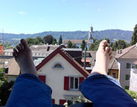 von Satellitenaufnahmen aus dem Raum Bülach, wo bei einem Chalet-ähnlichen Haus ein Wetterschmöcker gesichtet wurde, der seinen Swimmingpool füllte und auch gleich hineinsprang [Wahrscheinlich eher ein Russe bei der Eiseskälte AdR]. Auf Anfrage versicherten die Meteorologen, dass sie seit Jahren dieses Phänomen als sicherstes Zeichen für den sommerlichen Temperaturanstieg benutzen.