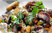 Der unbestrittene Favorit in Wäldern: Boletus edulis oder Steinpilz, Porcino, Cèpe, Boletus oder Seta de calabaza - einfach den richtigen Namen im entsprechenden Land ausprechen, resp sprechen lassen - für Irène. Ist im Juli bis Oktober zu finden, seine Sommerversion Boletus aestivalis findet sich vom Mai bis September. Er kann, so Rita, sehr gut eingefroren werden, getrocknet sei er ideal, weil dann die Aromata am besten zu Geltung kämen, zB in einem Risotto ai funghi porcini, hier nach dem Humm. Köstlich auch grilliert oder mit Hundspetersilie aus der Grillpfanne usw.