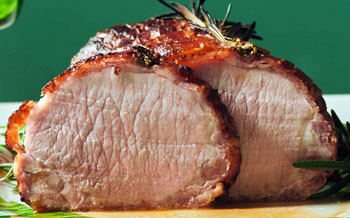 1500 grs Schweinscarrée, 300 grs Speckscheiben, Salz, Pfeffer und 6 Knoblauchzehen gepresst