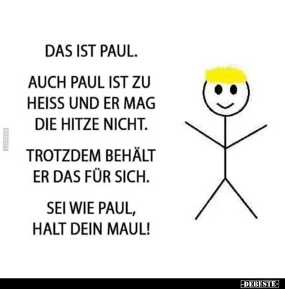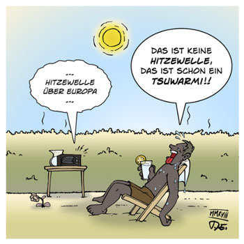 über dies und das, da meint der eine: “Sag mal, weisst Du, wie warm es heute ist?” “Also unser Thermometer hat heute morgen 21 Grad minus angezeigt.” “Los, dann lass uns schneller gehen, vielleicht gibt es ja Hitzefrei!”