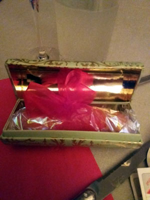 Hansruedi hatte wie jedes Jahr Geburtstag. Die Vitarunde hat schon vor einiger Zeit beschlossen, dass ein Geburtstaggeschenk nicht mehr zwingend ist, da wir schon alles haben und langsam mit dem Entsorgen anfangen sollten um die Erben mit Aufräumen zu entlasten. Heidi hatte ein gutes Herz und hat ihm ein Ueberraschungsgeschenk bereit gelegt. Eine sehr schöne, teuer aussehende Kartonrolle mit wunderbarem Inhalt: Ein Cervelat mit einem rosaroten Mäschchen.