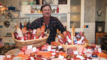 am Rebhang und die liebevoll von Rita vor dem Haus installierten Blumen-Dekorationen kahlgefressen. Peti stellte darauf einen Zaun entlang dem Wald auf, aber die hungrigen Tiere liessen sich davon nicht gross abhalten und verlustierten Ritas Gemüsegarten, natürlich nur die jungen Knospen. Eine nette Nachbarin machte die beiden auf den Schaden aufmerksam und sofort montierte Peti einen zusätzlichen Zaun um den Garten, worauf die Viecher in Nachbarins Garten auswichen. Schampi dachte wieder nur ans Essen