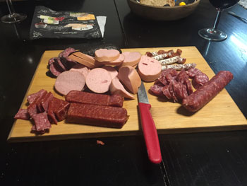 Sapperlot! Da fastet man/frau seit Neujahr intervall und nimmt auch tatsächlich 1000 Gramm ab und dann dies: Ein sündhaft gutes und üppiges Raclette nach Buchers Art mit allem Drum und Dran und weg ist die Gewichtserleichterung. Nur der Trost (für das schlechte Gewissen) bleibt, dass das Intervall bis zum nächsten Raclette etwas dauert. Einige Teilnehmer träumen immer noch von den exquisiten Ravioli aus dem Hause Bucher, würde man dieses Intervall zum Fasten benutzen, wären alle nach ein paar Jahren brandmager, da aus unbekanntem Grund die Teigwaren nicht mehr hergestellt werden dorten, naive Geister glauben, dass die Familie das Pasta-Rezept verlegt hat. Nur zur Illustration, ein Schnappschuss der Bucherkäseplatte.