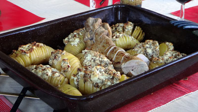 Sylvia (trotz Frauenstreiktag) und Paul boten einen perfekten Sommerabend im Freien. Mit einer gelassenen Routine kochten, buken und grillten sie für die gefrässige