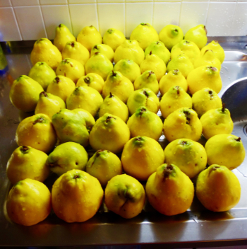 Quitte kommt bei uns etwas zu unrecht zu kurz, lediglich Quittengelée, -Konfitüre und Quittenpaste sind allen bekannt. In der Türkei, im Iran und weiter östlich sind die Früchte sehr beliebt, es werden dort dutzende Arten angebaut, bei uns ist praktisch nur die Birnenquitte erhältlich. Mit der Quitte kann man von der salzigen Vorspeise bis zum Dessert alles