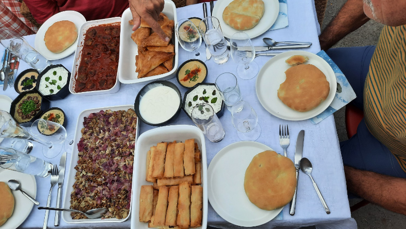 ziemlich schnell warm werden. Eine elegante Lösung ist eine MEZE das Essen ist sowieso meist lauwarm, wie es im Mittelmeerraum üblich ist. Zutaten für Nachahmer sind im Seefeld erhältlich. Der Aufwand ist riesig aber das Resultat war hervorragend. Bis auf die Nachspeise konnte der ganze Abend bei angenehmer Temperatur auf der Terrasse verbracht werden. Ein paar Regentropfen scheuchten uns dann doch noch in die Wohnung.