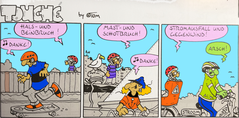 Statt Witz ein wunderschönes Cartoon von Touché über die todernsten Velofahrer