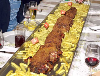 Giraffenhals genanntes Cordon-Bleu angeboten wird, das für mehr als 20 Personen reicht, also nix für den alternden Vita.