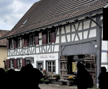 gute Kuchen aus der Dorf- Bäckerei. Zuerst musste allerdings vom Bahnhof Dachsen noch eine kleine Wegstrecke zum Kirchgemeindehaus (im Pfarrhaus kam Christoph Blocher zur Welt und nebenan C. G. Jung, auch er esoterisch) zurückgelegt werden. Der Weg führte an verschiedenen Winzerhäuser vorbei, die alle zur Degustation einluden - aber das Programm sah keine Pausen vor, dafür zahlreiche Lesungen für das Publikum mit Spiel- und Psychologie-Einlagen, da dieses vorwiegend aus Lehrpersonal bestand trugen mehrere Gäste auch noch ein Gedicht vor - Heidi war es danach richtig übel, so dass ihre Ambulanz sie rasch zum nächsten Bahnhof trug und erst in der Zürcher Wirklichkeit bei Wienerschnitzel mit Pommes und einem Tessiner Merlot erholte sie sich einigermassen.