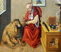 steckt, den Androklus entfernt und die beiden lebten drei Jahre zusammen, bis Androklus bei einem Spaziergang von den Römern gefangen genommen und zum Tod in der Arena verurteilt wird. Der Löwe der ihn fressen soll ist aber sein Kumpane und leckt ihm die Hände; der Kaiser liess vor Rührung die beiden frei (Da diese heidnische Geschichte weitbekannt war, erfand die Kirche die gleiche Sage mit dem, natürlich, heiligen Hieronimus).