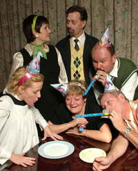 Scharpfeneckers haben für ihre neue Küche und für das neue Badezimmer soviel ausgegeben, dass sie nun sparen müssen. Es reicht nun nur noch für eine Zigarre pro Abendgesellschaft. Diese wird redlich unter die Teilnehmer verteilt. Es ist ratsam eine Pfeife mitzunehmen oder den Schnauz mit einer Binde zu schützen, sonst könnte er Schaden nehmen. Sie können natürlich ihre eigene Trinidad mitnehmen, müssen aber höllisch aufpassen, dass sie nicht unter Dämpfs Messer kommt. | |||||||||||