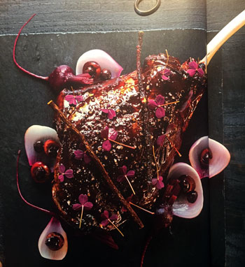 und erinnerte sich an ein Rezept von Rasmus Grønbech, also nur an den Titel: Rehbock mit Kirschen, Randen und Süssholz.