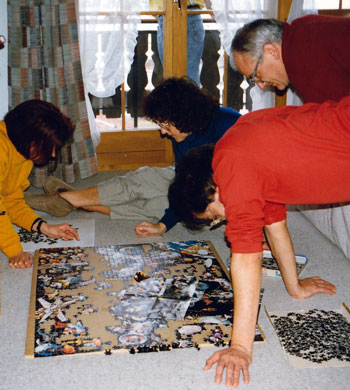 nachdem sie zuerst Weihnachten bei ihren Kinder mit dem Enkelkindern gefeiert haben. Trotz der vielen Feierlichkeiten hat Peti kaum zugenommen. Frauen sind ja immer etwas vernünftiger, nur so nebenbei. In den Anfangszeiten des Parcours besuchten die Sportlerrunde Hauensteins in Savognin und setzten mit Rita ein riesiges Puzzle zusammen, das so aufwändig war, dass sie gar dort schliefen, inklusive Erika…. Nun haben Irène und Hansruedi sich wieder aufgemacht und die beiden dort besucht. Sie wurden reichlich belohnt mit Sun, Fun und Schnee.